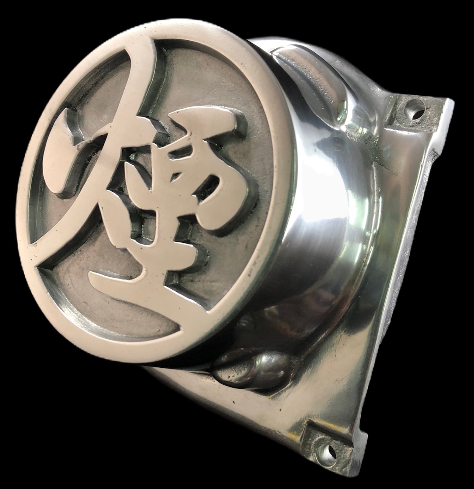 大きな丸フチ内に、煙の一文字がカッコいいと380オーナー様に好評頂いております。