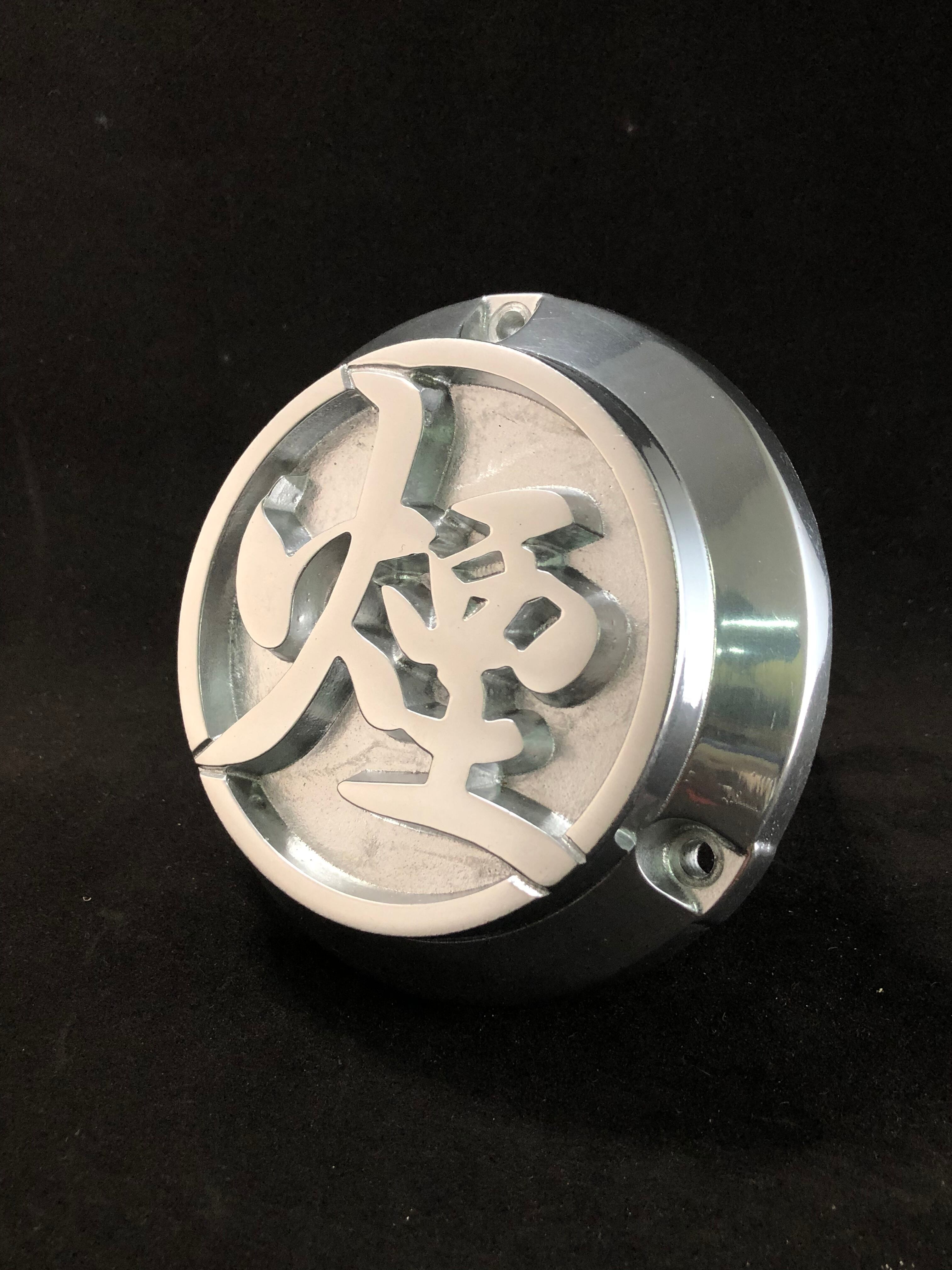 大きな丸フチ内に、煙の一文字がカッコいいと380オーナー様に好評頂いております。